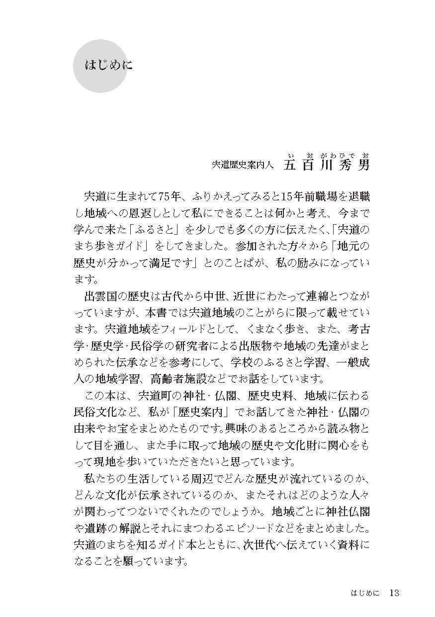 松江市宍道町をフィールドに、長年「歴史案内人」をつとめる著者が、地域に伝わる歴史・文化を幅広く紹介。
